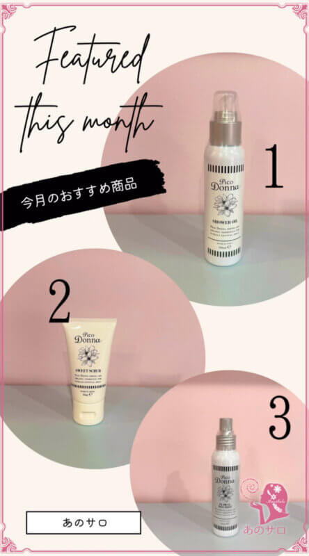 あのサロでは、シャワーオイル・スクラブ・ミストの3種類がございます!